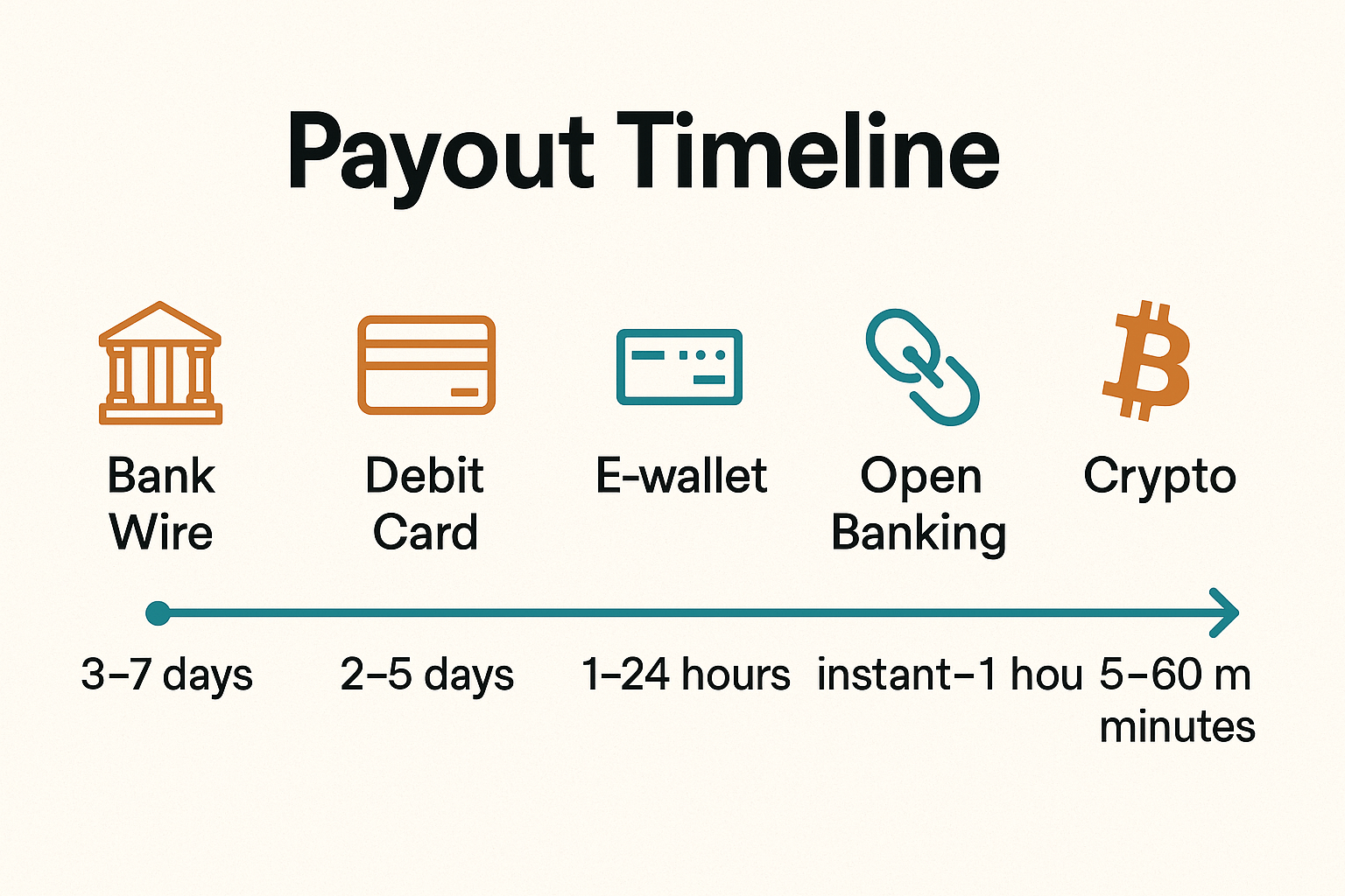- Clear information upfront: They list payout times for every payment method before you deposit.